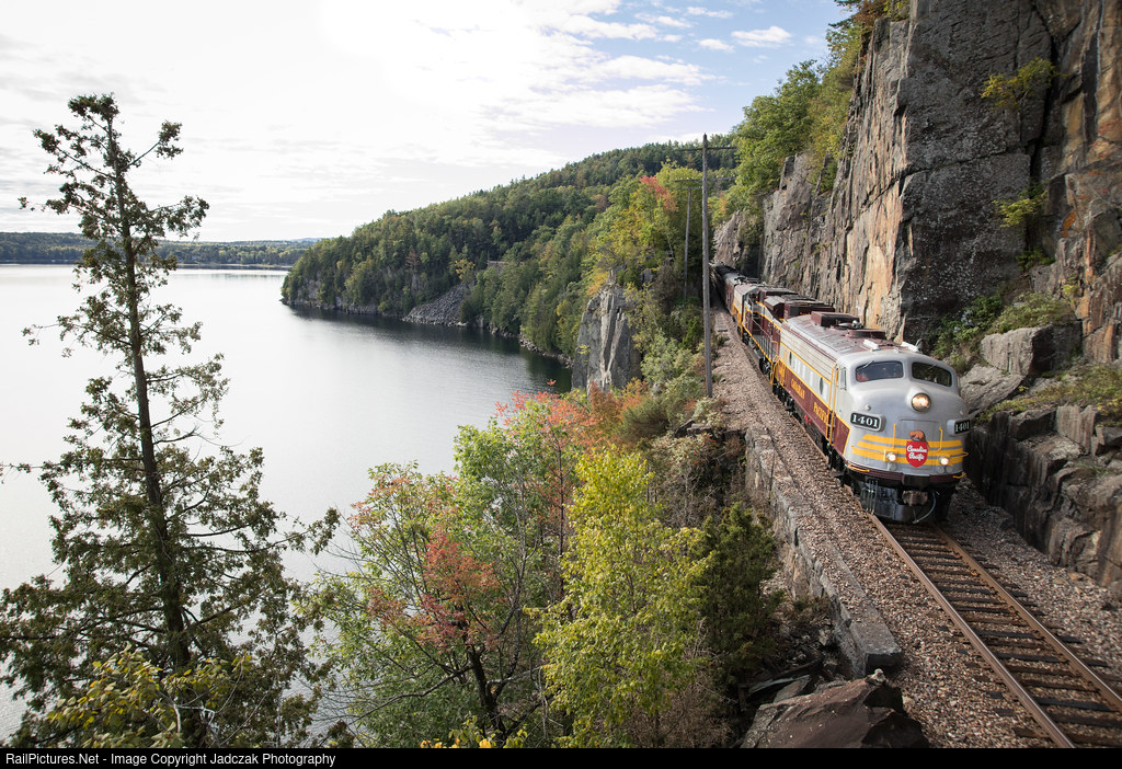 Canadian Pacific’s OCS heads north along Willsboro Bay with FP9 1401 in charge.