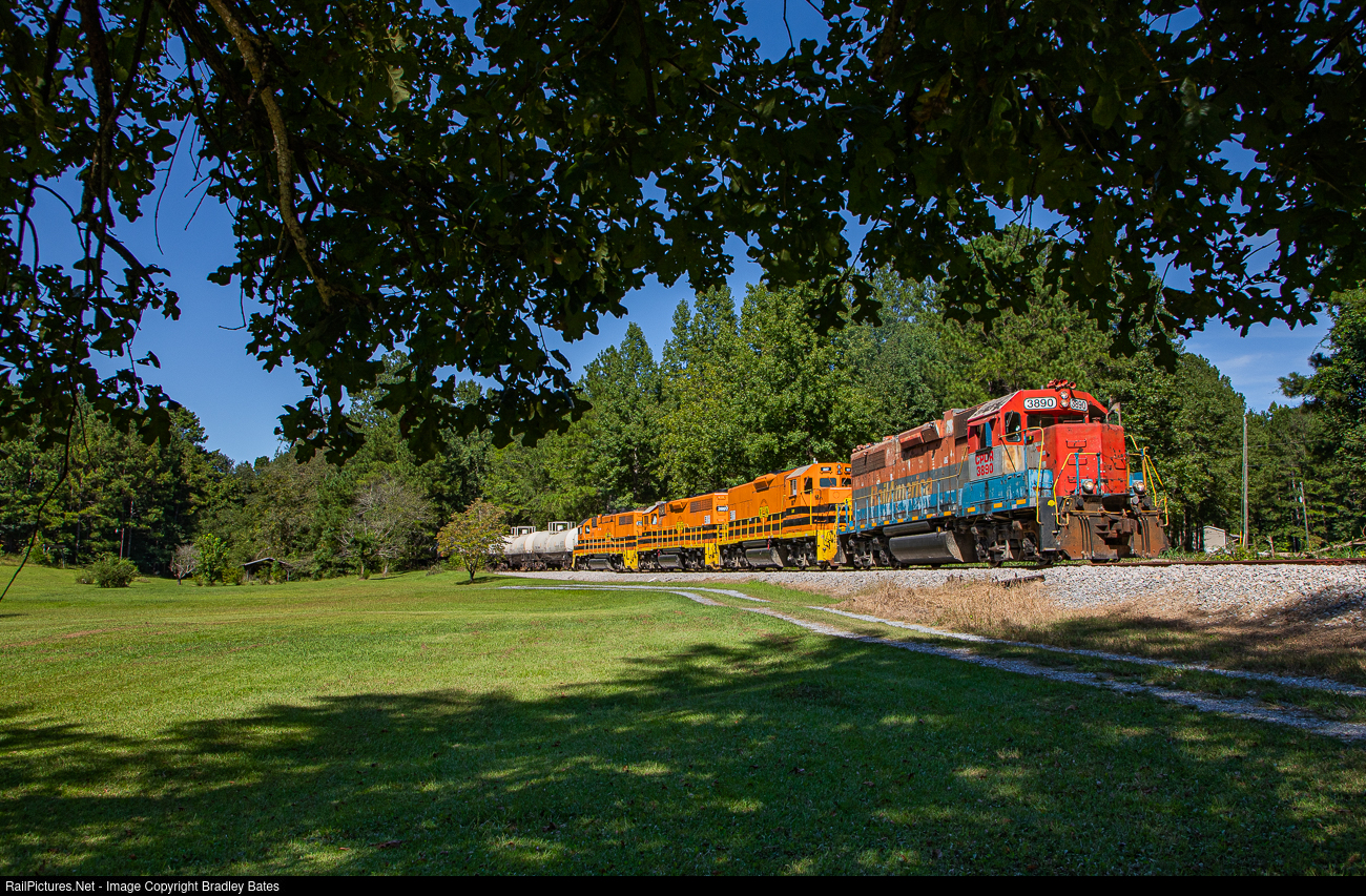 | Eastern Alabama Railway's Talladega Turn, heads back south to Sylacauga as they pass through Emauhee, AL, with interchange from CSX. |