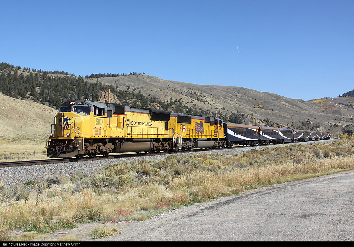 RailPictures.Net Photo: RMRX 5107 Rocky Mountaineer Railtours EMD SD70 at Flat, Colorado by Matthew Griffin