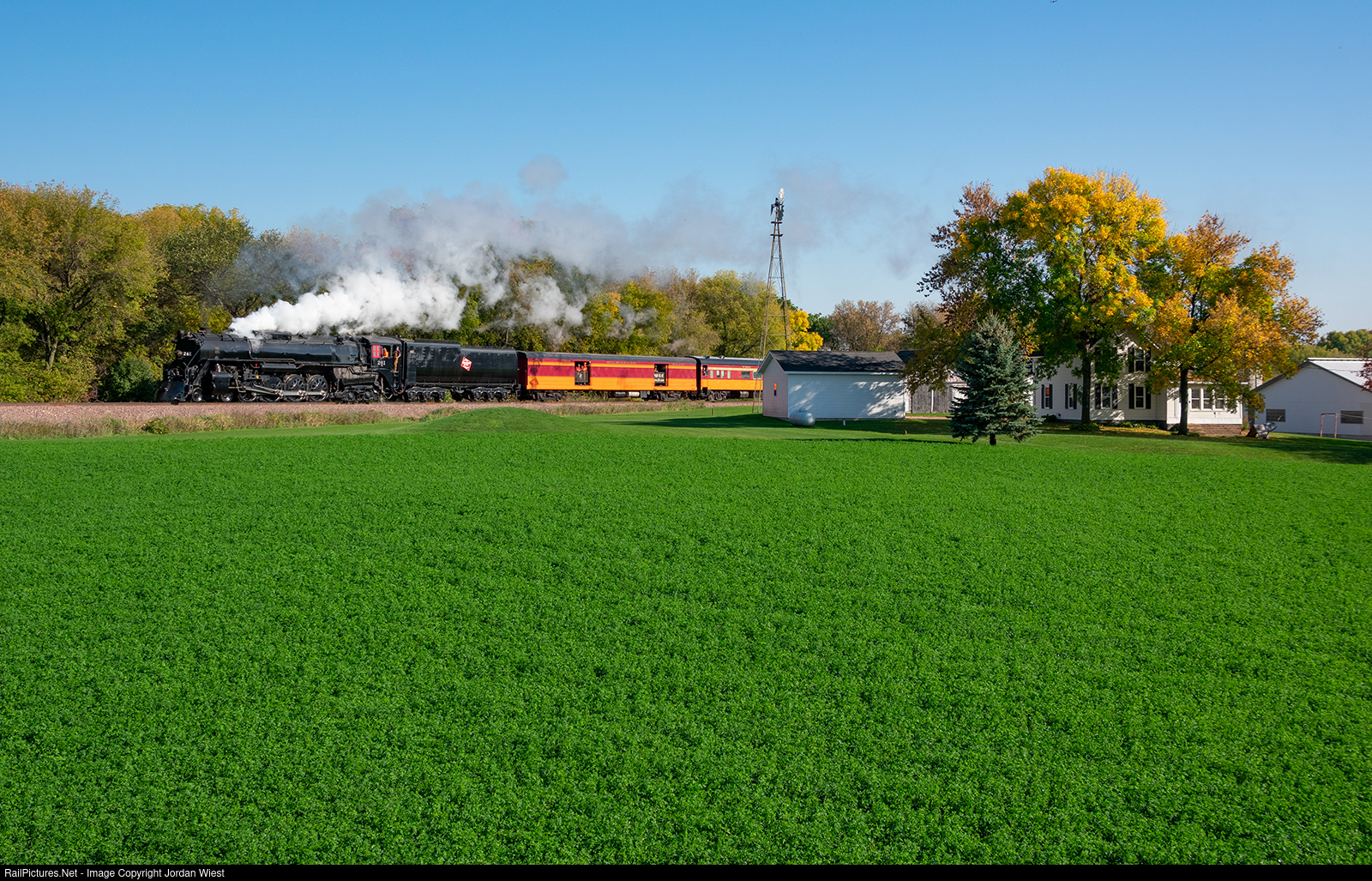 On a bright fall morning, 261 heads west with the excursion train to Glencoe past the iconic farm in Augusta. This was probably the most photographed farm in the state this weekend.