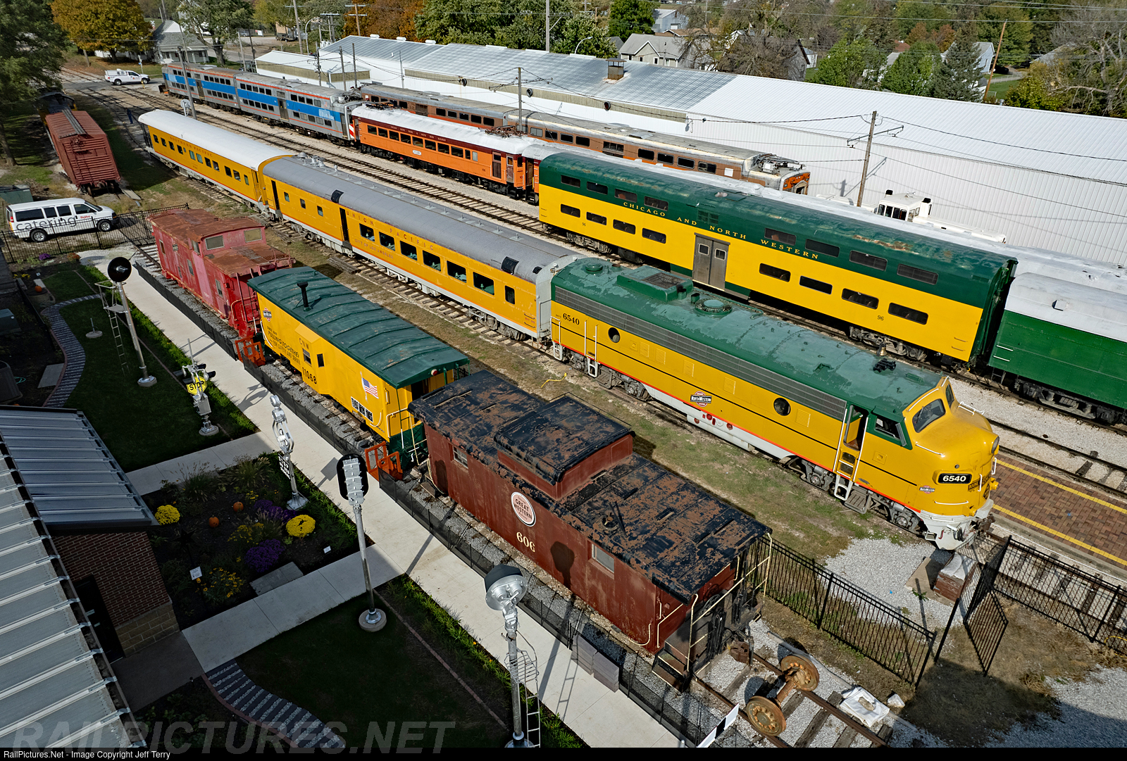 FP9 6540 is being prepared for the lunch train at Boone, Iowa, on the Boone & Scenic Valley Railroad. Lots to see at the Boone station, including a number of former commuter cars and cabooses from area railroads.
