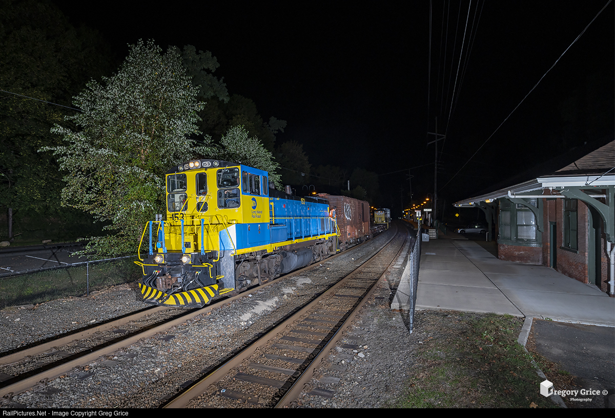 During the early morning hours of October 9th, 2021, Long Island Rail Road RFX13 is seen heading east past the former Glen Cove Station on the Oyster Bay Branch with vintage boxcar "SHOP 100" in tow. The boxcar was on it's way to its new home at the Oyster Bay Railroad Museum where it will sit on display for all to see.