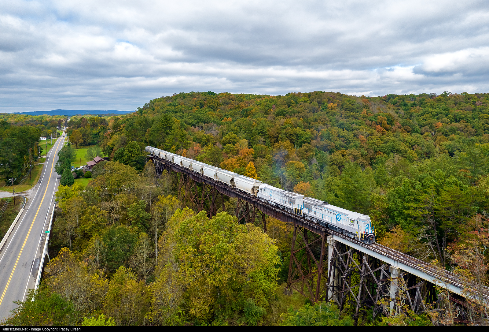 Bridging Time Zones. The Lhoist limestone train crosses the Piney Creek Bridge, otherwise known as the Timezone or Timeline Bridge because this is the boundary between Central Time and Eastern Time. I was excited for the opportunity to catch this former Southern Railway High Hood leading the limestone train east to Rockwood.