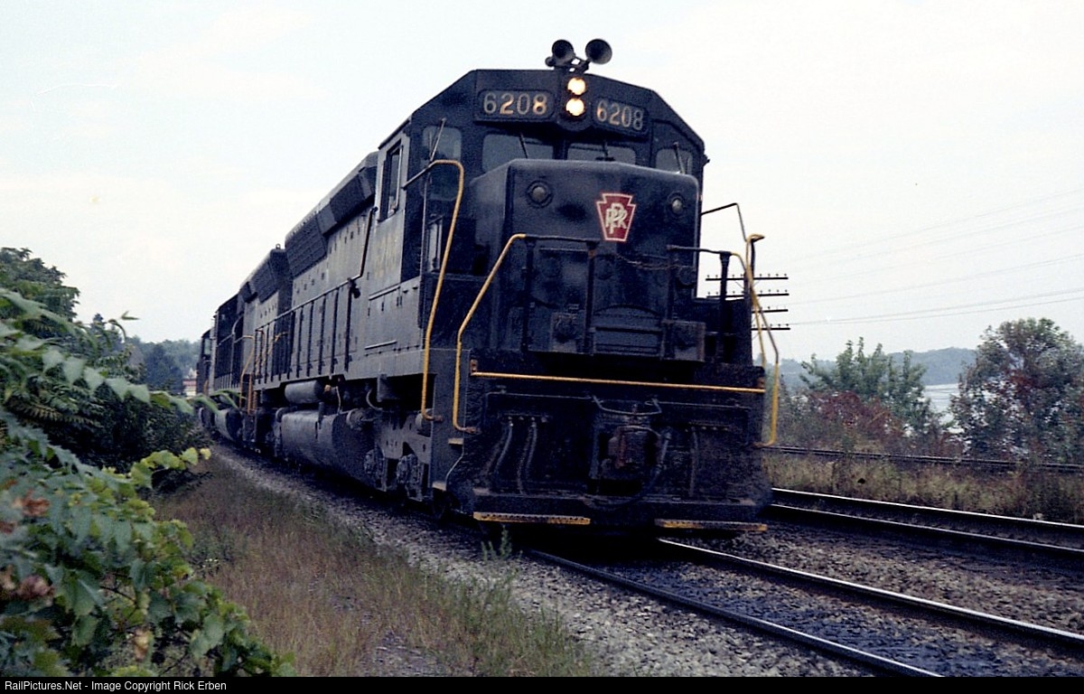 About as spartan and bland as a locomotive could get, PRR 6208 leads hotshot CNY-4 on No.1 track through the super-elevated curve along the banks of the Susquehanna River in Duncannon, PA. There wasn't much to love as PRR applied the minimum identity to power preceding the merger, but the iconic Pennsy keystone said it all. Some fifteen miles to the east of here, diesel power would yield to E44 or GG1 electrics for the remainder of the consists' journey to Meadows yard in northern New Jersey.