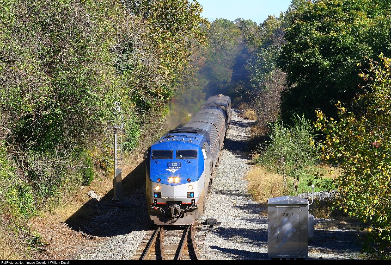 RailPictures.Net Photo: AMTK 120 Amtrak GE P42DC at Ivy, Virginia by William Duvall