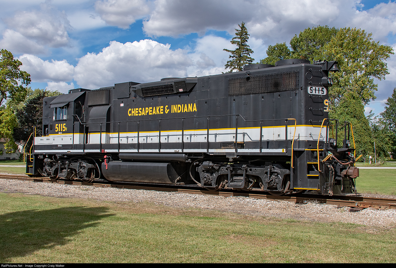 Indiana Box Car Corporation GP38-2 5115's heritage should be pretty obvious, given the high short hood, the paint scheme and the "F" on the frame on the long-hood end (along with the check "digit" letter as well) – this Geep was built by EMD in 1974 as Southern Railway 5115F, and later became Norfolk Southern 5115. IBCX is one of several engines leased by them to the Chesapeake & Indiana (CKIN). (La Crosse, Indiana – September 25, 2021)