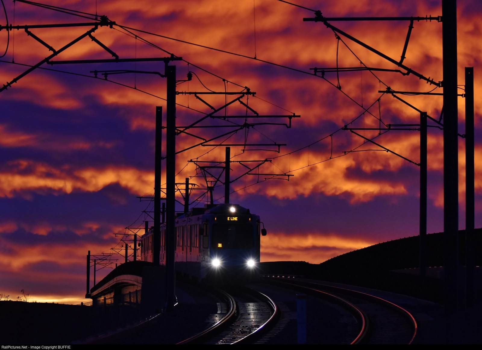 Mother Nature offered up an especially colorful sunrise as RTD light rail train 336 heads towards the Lone Tree station.