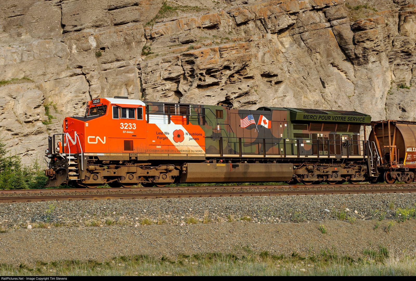 Honouring our Veterans, CN ET44AC 3233 heads west on the point of train M309.