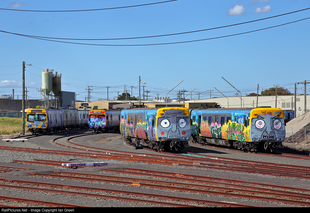 Stored Metro Comeng sets await their fate in North Shore Yard.