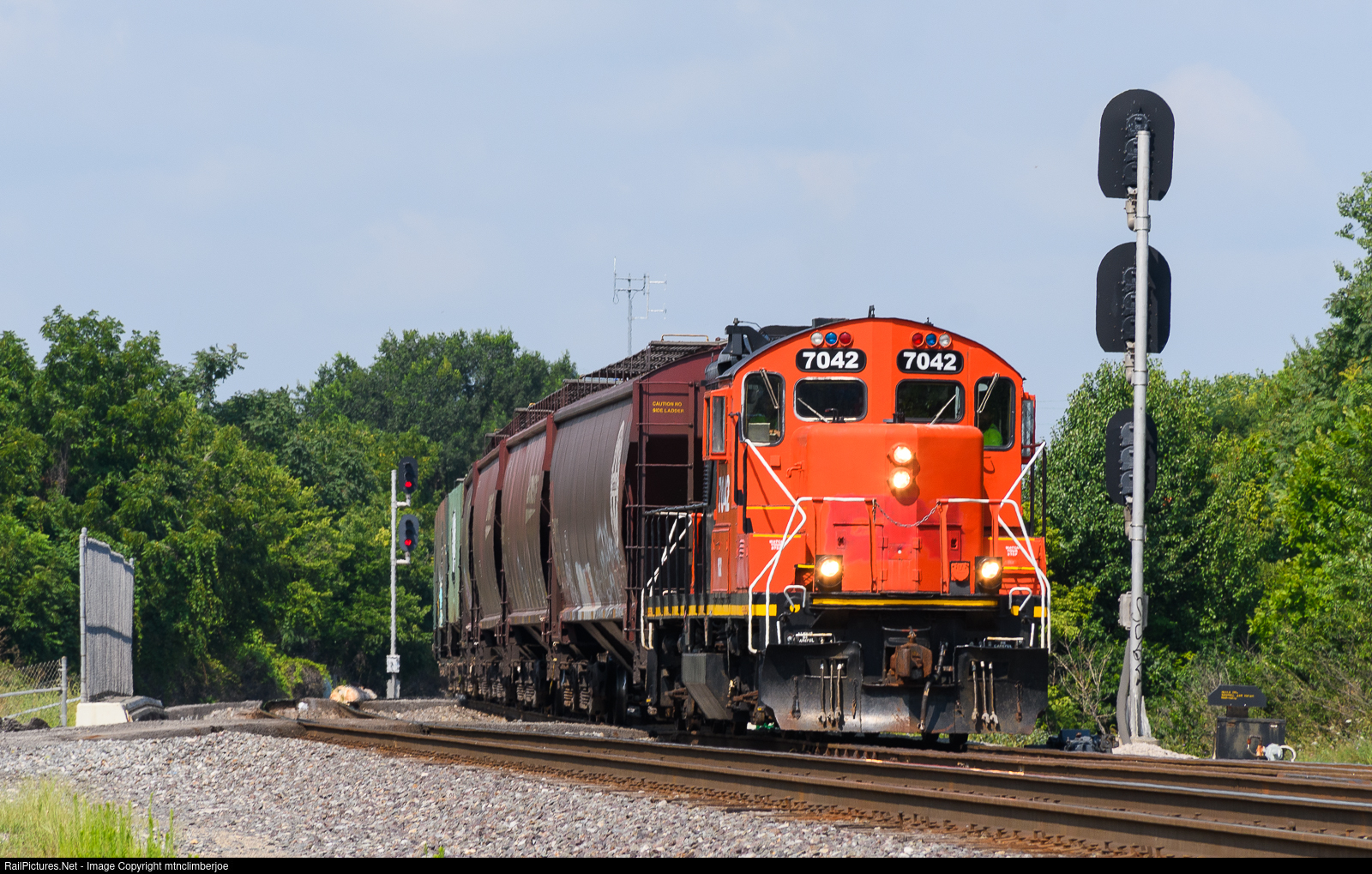| One of the Camp Chase Railroad's ex. CN GP9RM's leads local train CAMY-01 as it rolls through the signals approaching LM Cabin in Columbus, Ohio and makes its way towards the interchange with Norfolk Southern. |