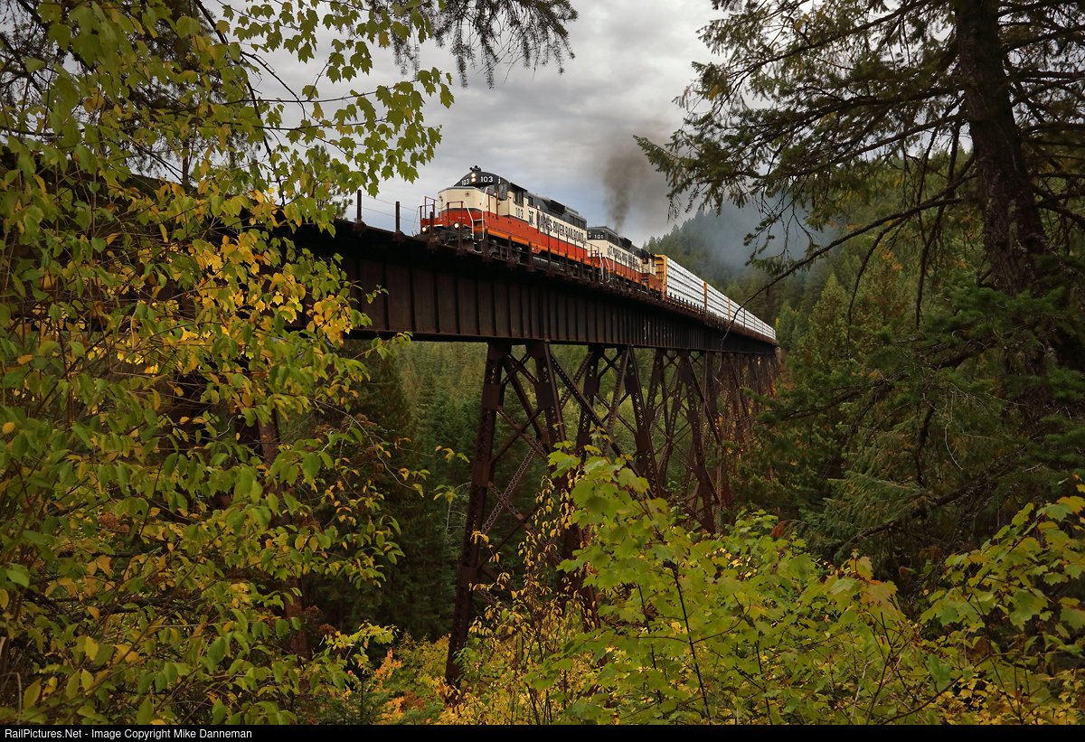 The sky is still leaden with morning clouds as St. Maries River Railroad’s Plummer turn rumbles over Pedee Creek trestle at Pedee, Idaho, on September 27, 2021. Some early autumn color helps brighten a quintessential day in the Northwest, while enjoying a still-surviving fragment of Milwaukee Road’s Pacific Extension that was mostly forsaken 41 years ago.