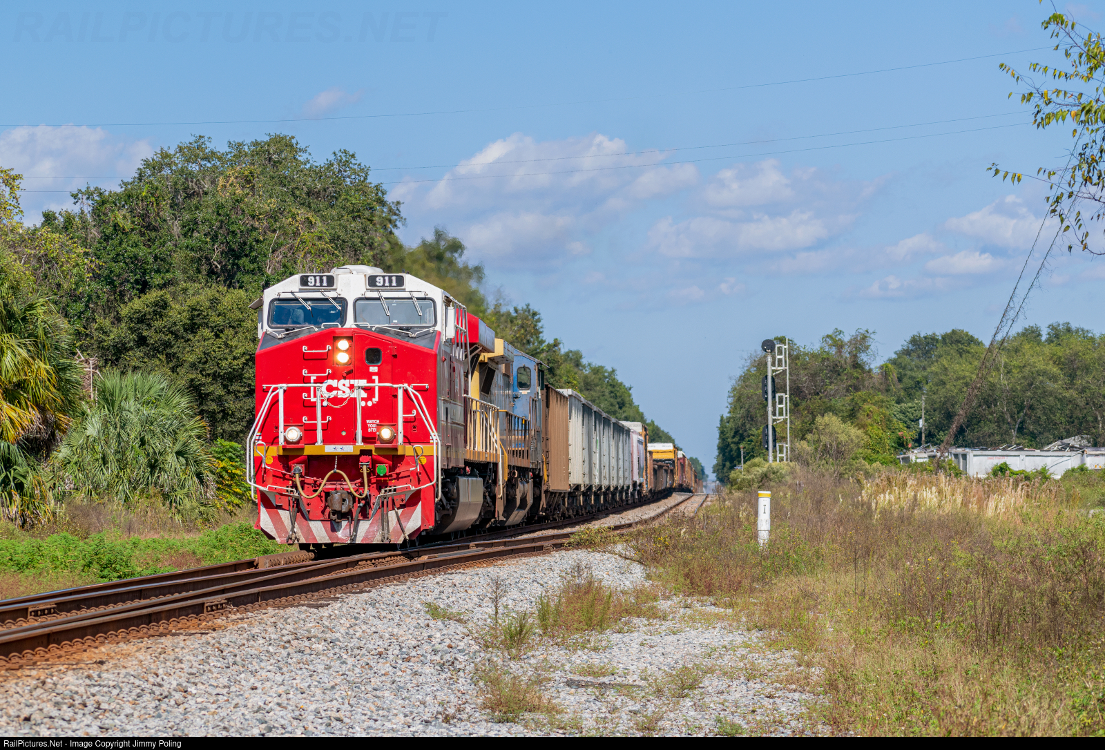 | CSX 911, the Spirit of Our First Responders, leads Q45326 after working Wildwood and meeting local A782 here at Coleman. |