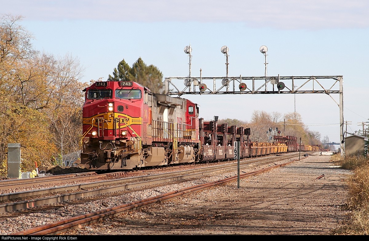 BNSF 743 and 779 in their native colors come drifting into Galesburg, IL on one of those crisp October mornings. You knew this was the "Q" from the distinctive signal system, yet changes were imminent that spelled the demise of the searchlights for a bunch of poles that look just like any other, any place.