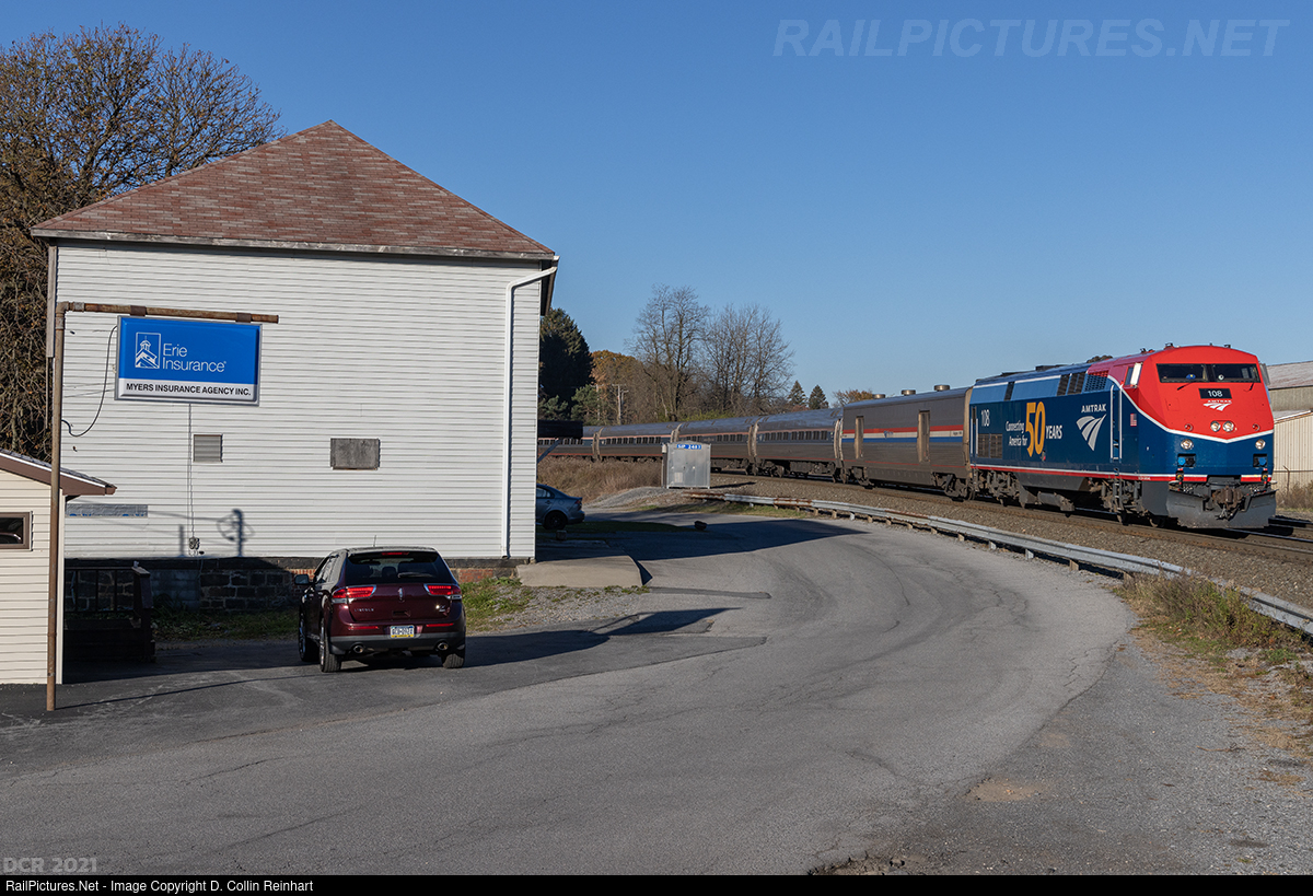 Making its first trip across the Allegheny Mountains, AMTK 108, on of the new 50th Anniversary Locomotives leads Amtrak 42, the eastbound Pennsylvanian across the Allegheny Mountains on its Pittsburgh to New York trip.