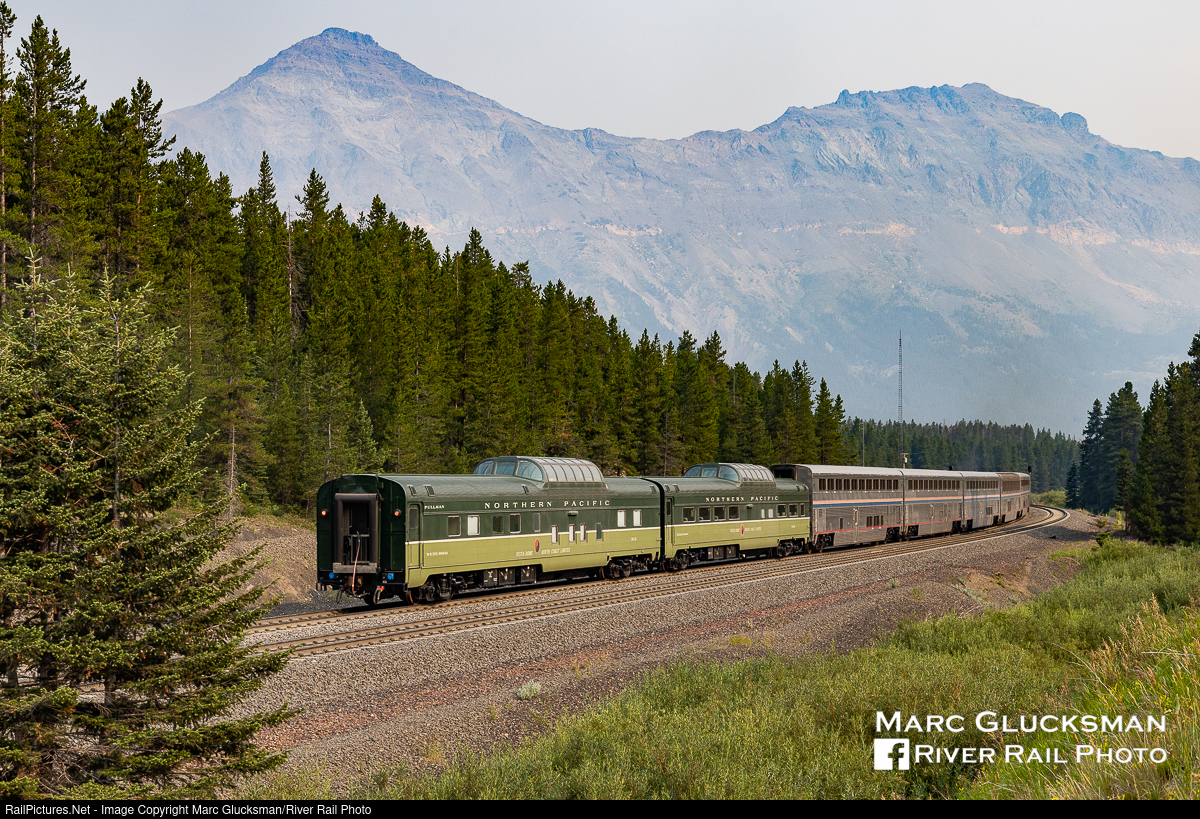Park Train. Webb Rail’s former Northern Pacific Railway Budd built Pullman dome/sleeper 313 (WEBX 801044) and former Northern Pacific Railway Budd built dome/coach 549 (WEBX 801045) held the markers on the Amtrak Empire Builder (Train 8 on the morning of Wednesday, August 4, 2021. The train is passing through Summit, Montana in Glacier National Park. While the Northern Pacific Railway operated these cars on the “North Coast Limited”, redesigned routes would bring them here during Amtrak management. Current proposals are being discussed to return passenger service to the “North Coast Limited” this line as well.