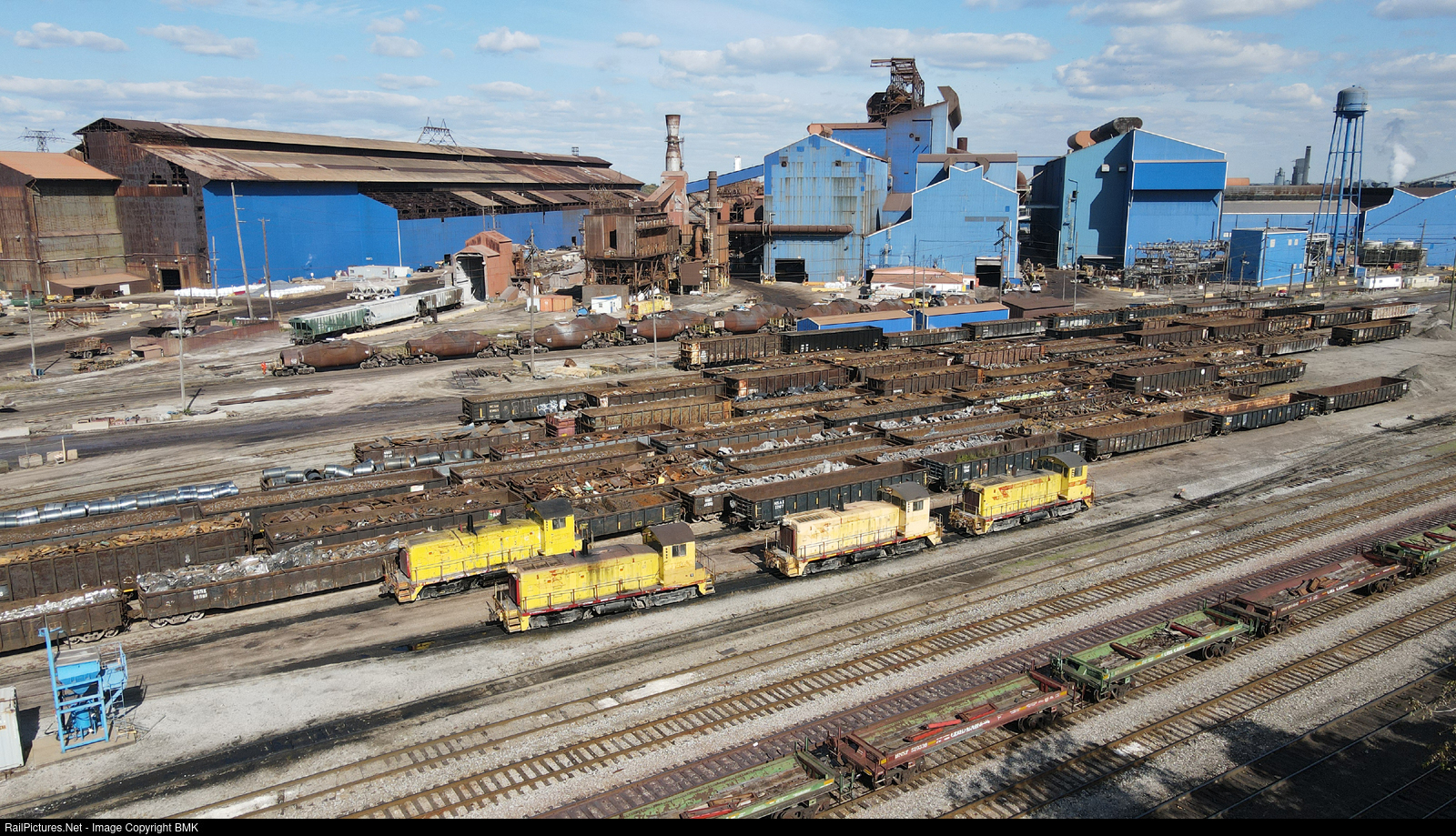An interesting view of the USS Granite City Works and four SW1200 taking a rest waiting on the next assignment.