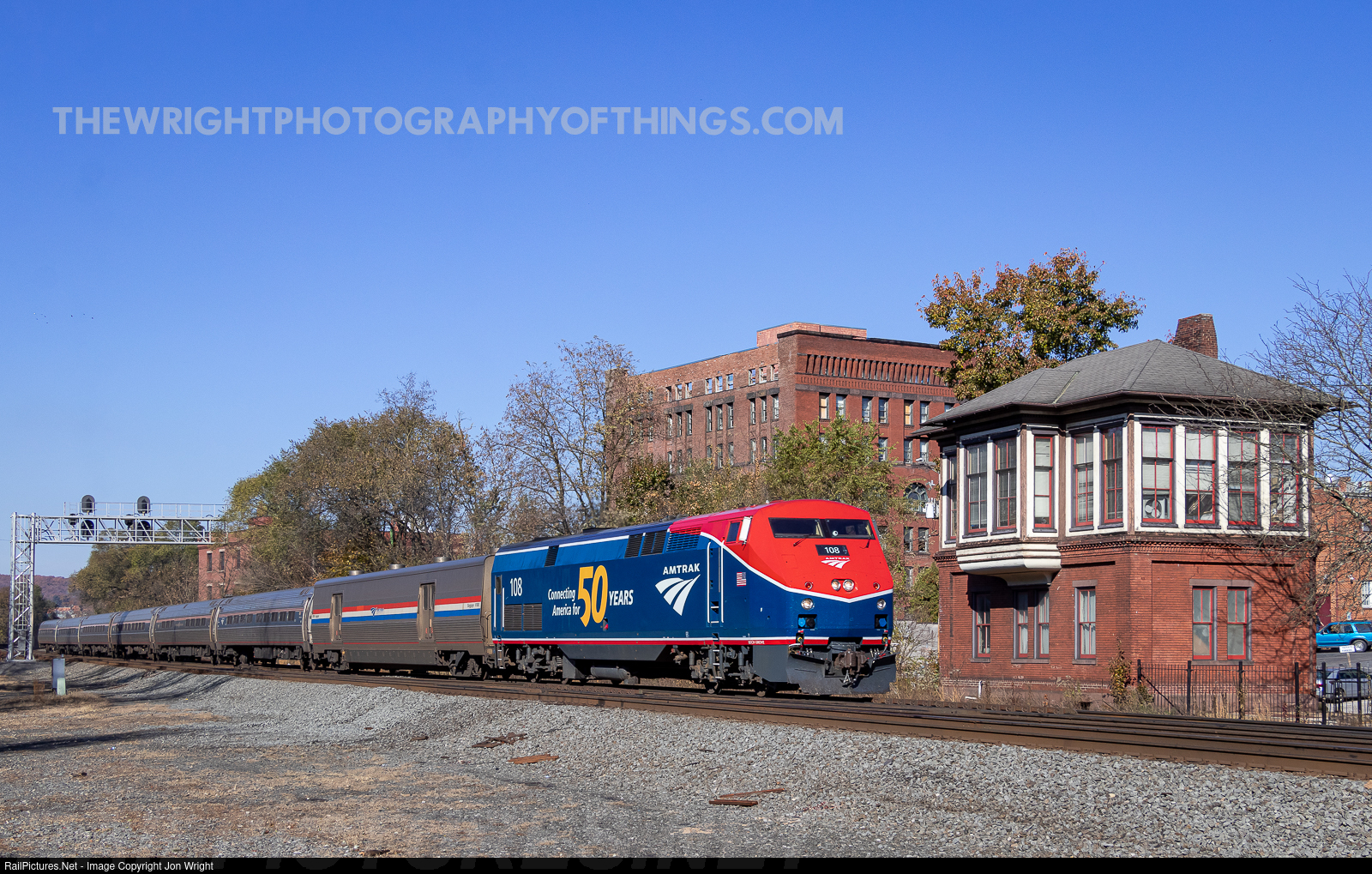 RailPictures.Net Photo: AMTK 108 Amtrak GE P42DC at Huntingdon, Pennsylvania by Jon Wright