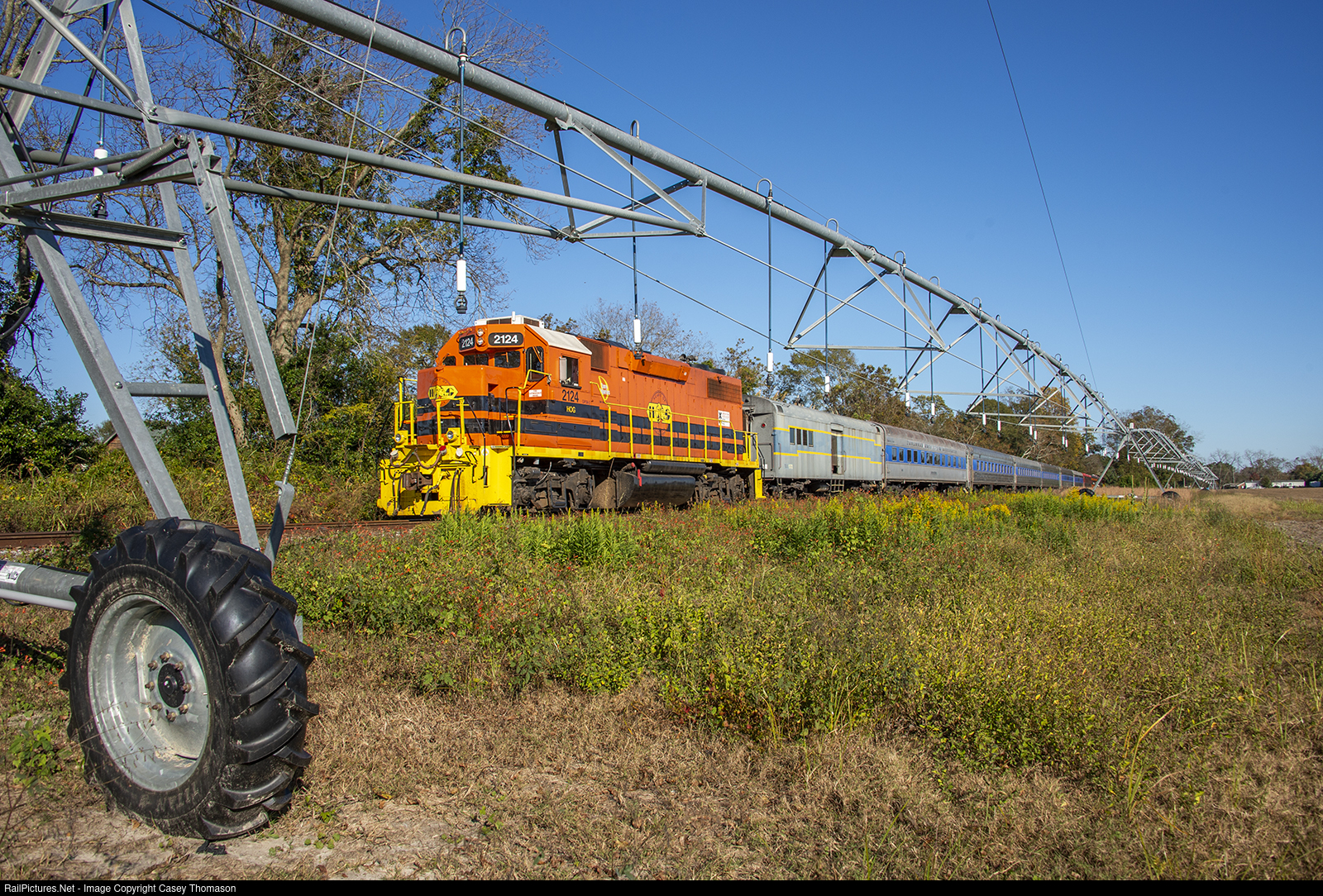 HoG 2124 leads the Cordele Railfan Festival excursion train past a farm on the east side of Cordele.