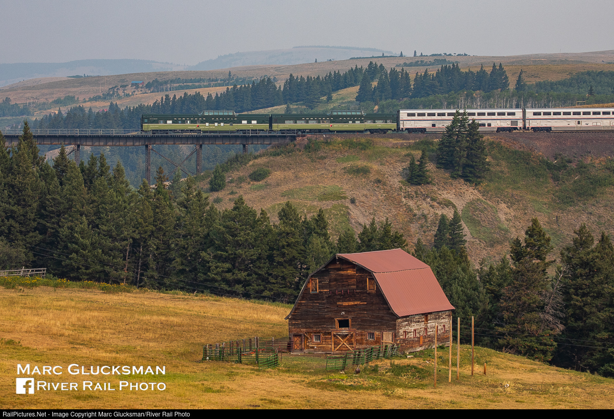 Two Domes At Two Medicine River. The classic scene at the Two Medicine River Bridge in East Glacier Park, Montana was just one of many scenes that were well complimented by the presence of Webb Rail's former Northern Pacific Railway Budd built Pullman dome/sleeper 313 (WEBX 801044) and former Northern Pacific Railway Budd built dome/coach 549 (WEBX 801045) on the rear of Amtrak Train 8 (Empire Builder) on August 4, 2021. The cars were returning from Portland, Oregon, and would be in Chicago, Illinois the next day.