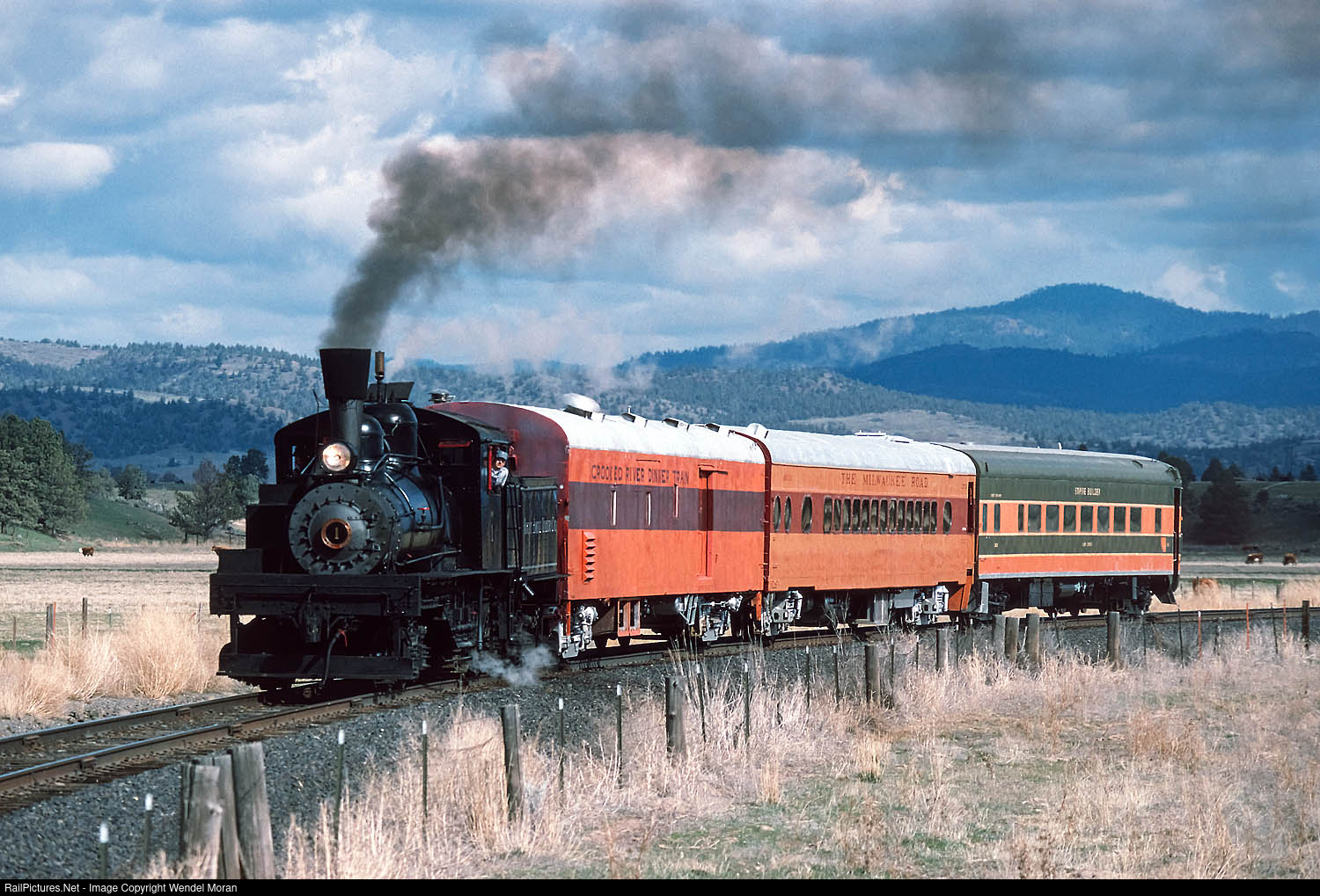 | Not long after it was returned to service in Oregon, the Mount Emily Shay pulls the Crooked River Dinner Train on the City of Prineville Railway. |