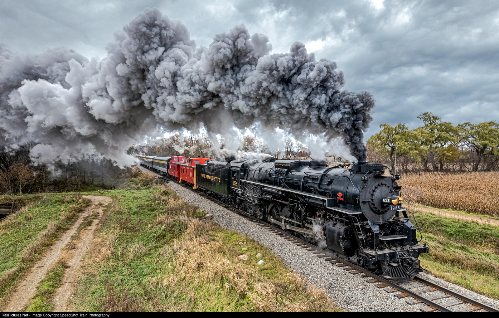 RailPictures.Net Photo: PM 1225 Pere Marquette Steam 2-8-4 at Carland, Michigan by SpeedShot Train Photography