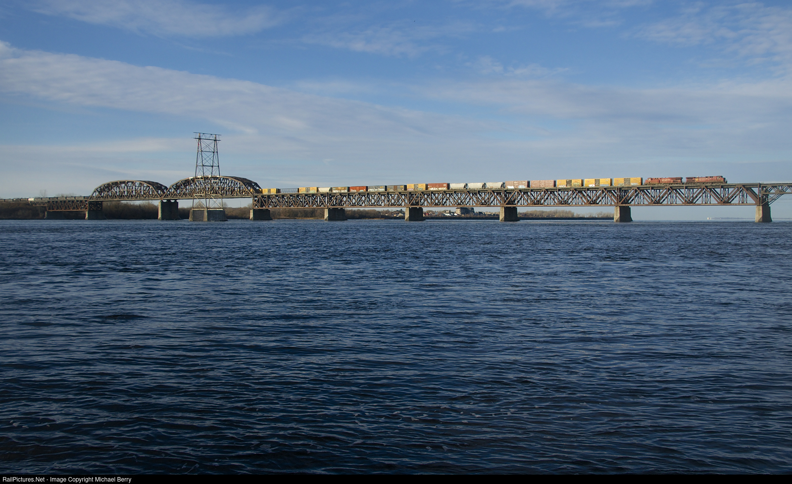 CP 8632 & CP 8900 are the power on CP 253 as it crosses the St. Lawrence River a bit later than usual.