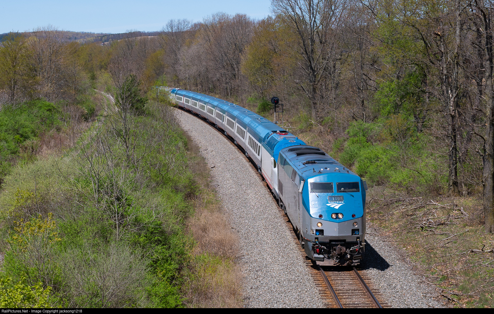 RailPictures.Net Photo: AMTK 119 Amtrak GE P42DC at Arkport, New York by jacksong1218