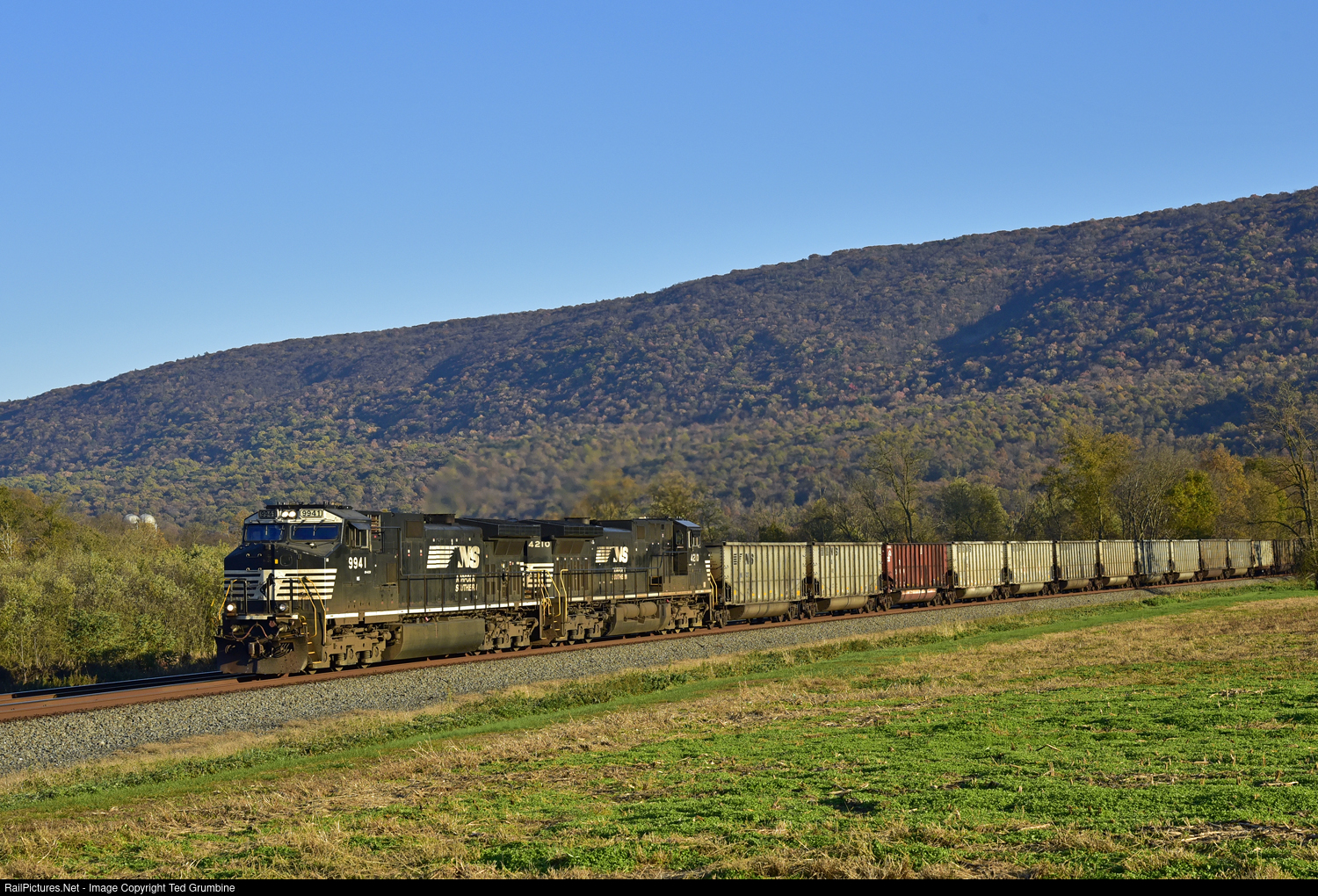 There remains a fair amount of coal moving across the former PRR Middle Division, but most of it is for export. Witness this Y91 (an extra 591), coal empties out of the Port of Baltimore, westbound approaching Book’s Crossing (Mexico, PA) while en route to Shire Oaks on the Monongahela River.