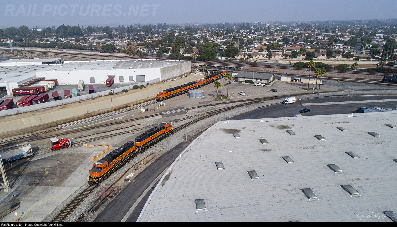 A gaggle of BNSF GP60M's await their next assignment at the La Mirada yard office as the normally busy mainline in the background remains relatively quiet this Friday morning.