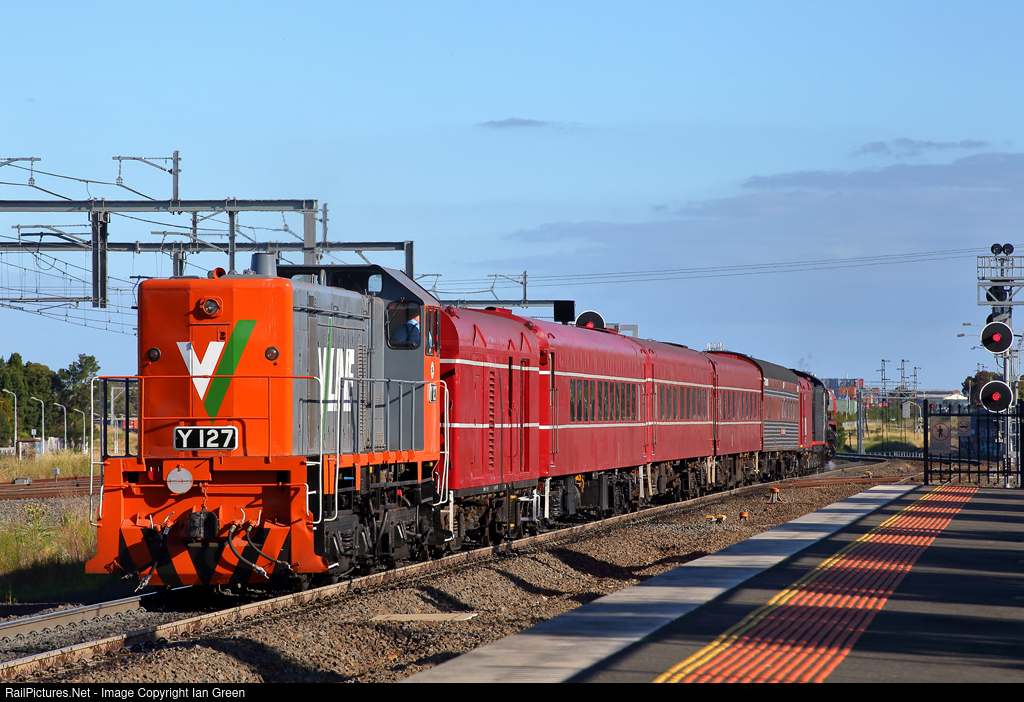 Y127 trailing a 707 Operations heritage tour from Bacchus Marsh passes through Sunshine Station.