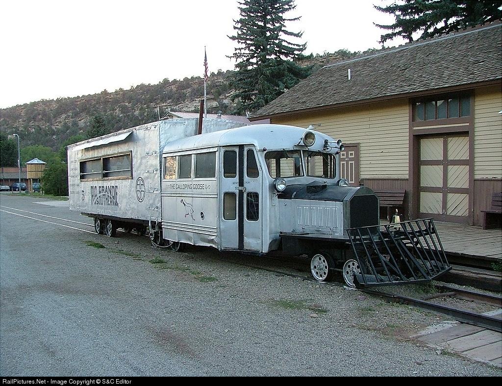 Former RGS "Galloping Goose" #5 parked in Dolores. This is an operating Goose and is used at Durango Rail Fest, etc.