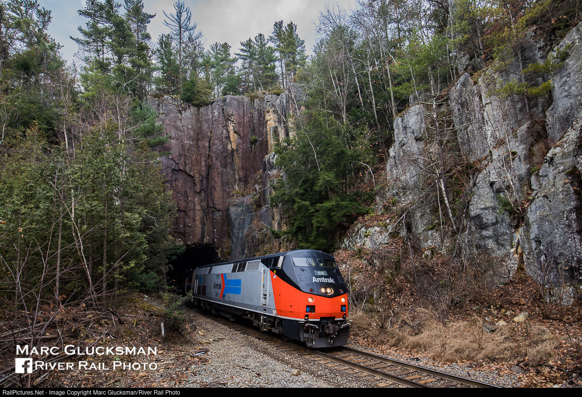 Back Into The Light. A wide view shows the north end of the Willsboro Tunnel in Willsboro, New York on the former Delaware & Hudson Railroad during the Amtrak/Canadian Pacific/Capital Region Toys for Tots on Sunday, December 3, 2017. Amtrak 156 (P42DC, Phase I) leads north as the train heads towards Rouses Point, NY, distributing clothes and toys and giving children a chance to meet Santa Claus along the way.