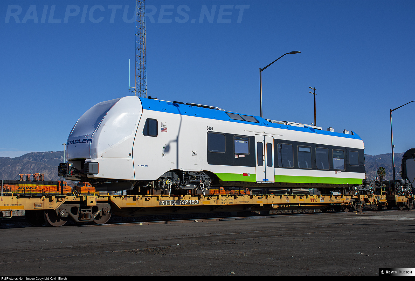Brand new Stadler DMU #3401 sits in its new home in San Bernardino, CA, having just been delivered after a two and a half week journey from Salt Lake City. This new set, along with two sister DMUs, will run new Arrow service from San Bernardino to Redlands planned to start in 2022.
