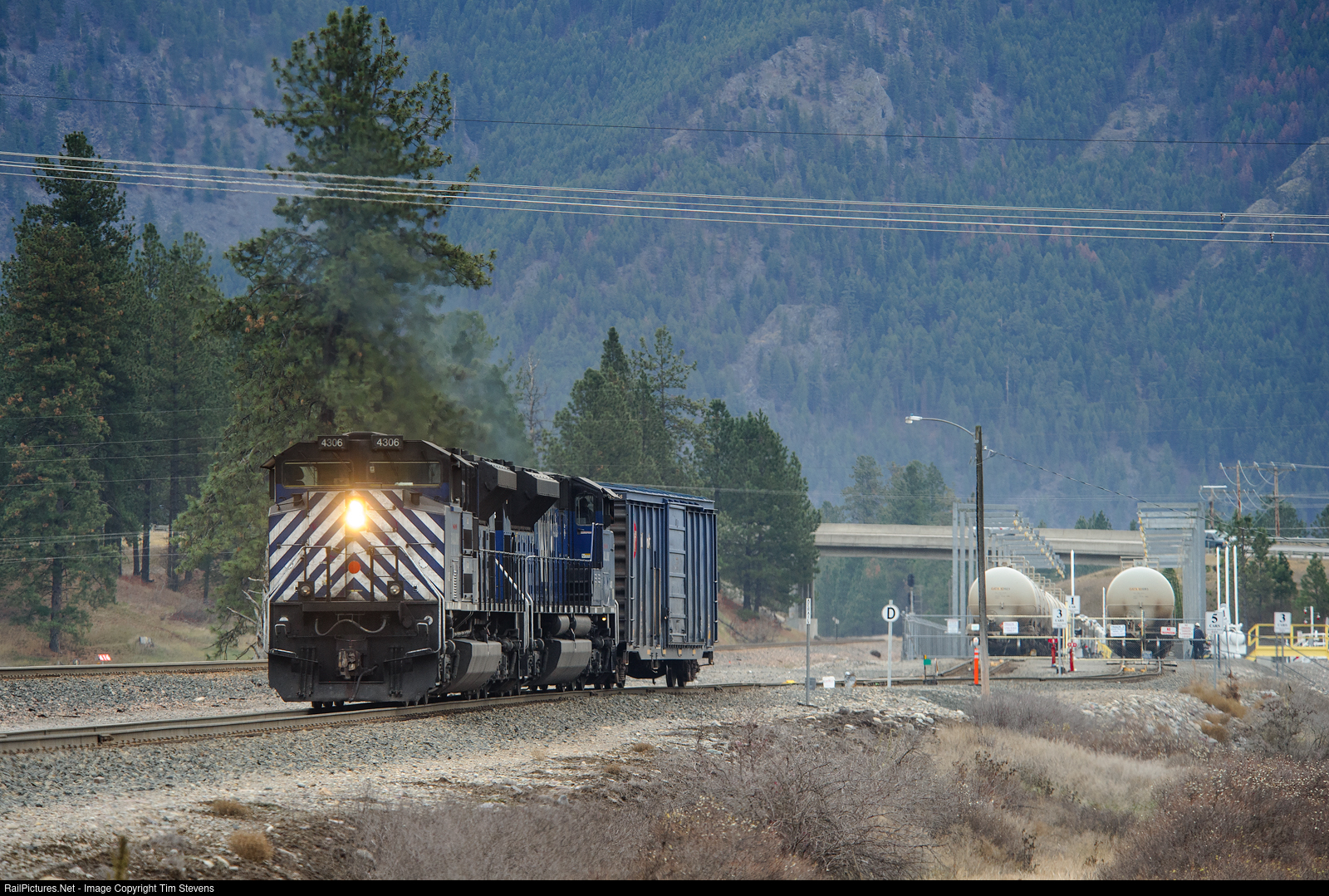 | After spotting loaded tanks at Pipeline, MRL SD70ACes 4306 and 4303 head to the west end to grab the empties that they pulled earlier before departing for Missoula. |
