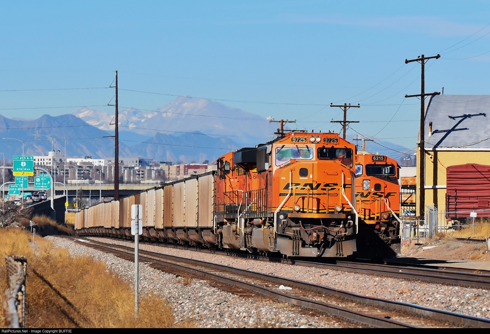 | BNSF 9725 (SD70MACe) waits for a green signal before heading south on the Joint Line out of Denver, Colorado. |
