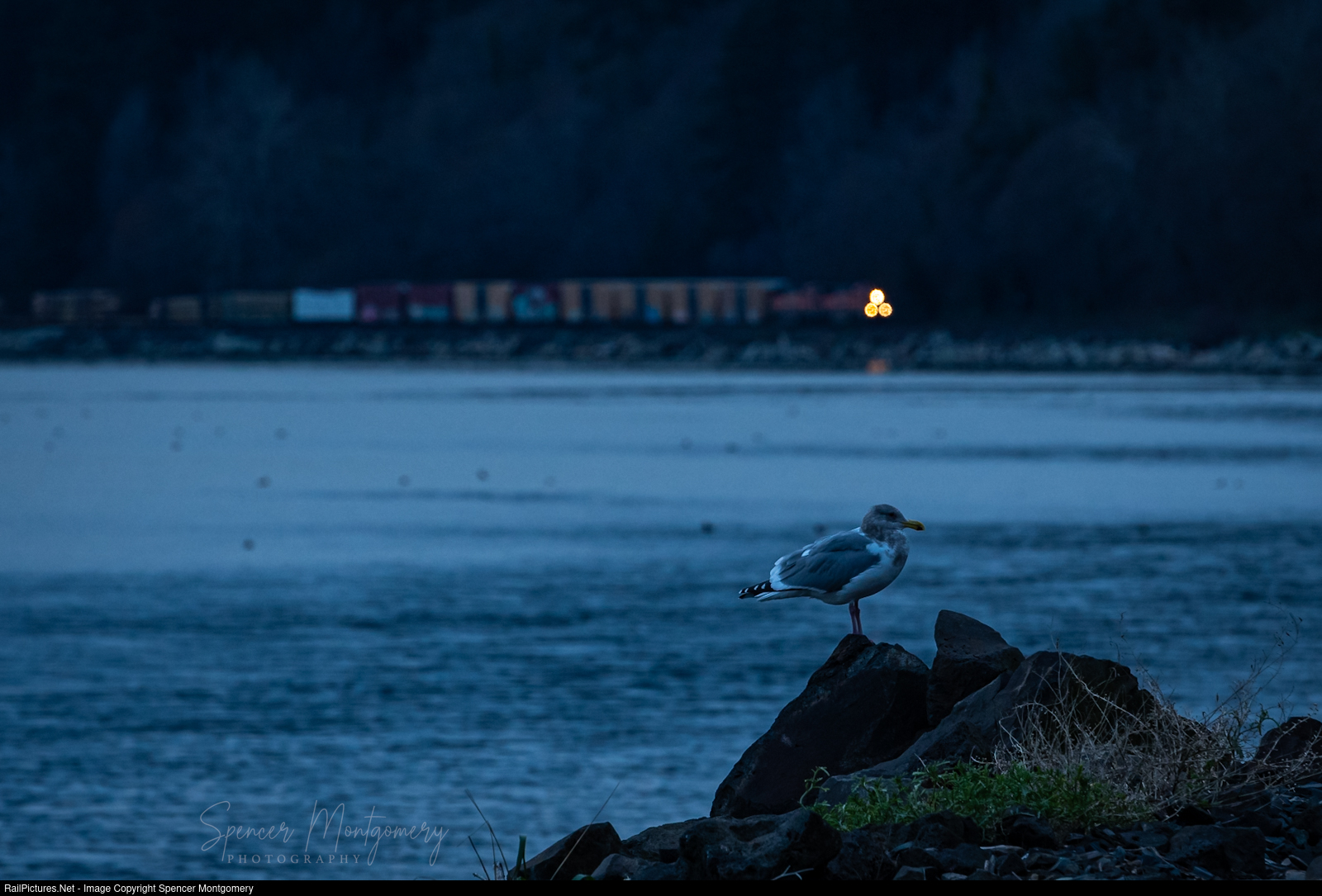 Blue hour has set in, as the VBCEVE makes its way south along the shore of White Rock.