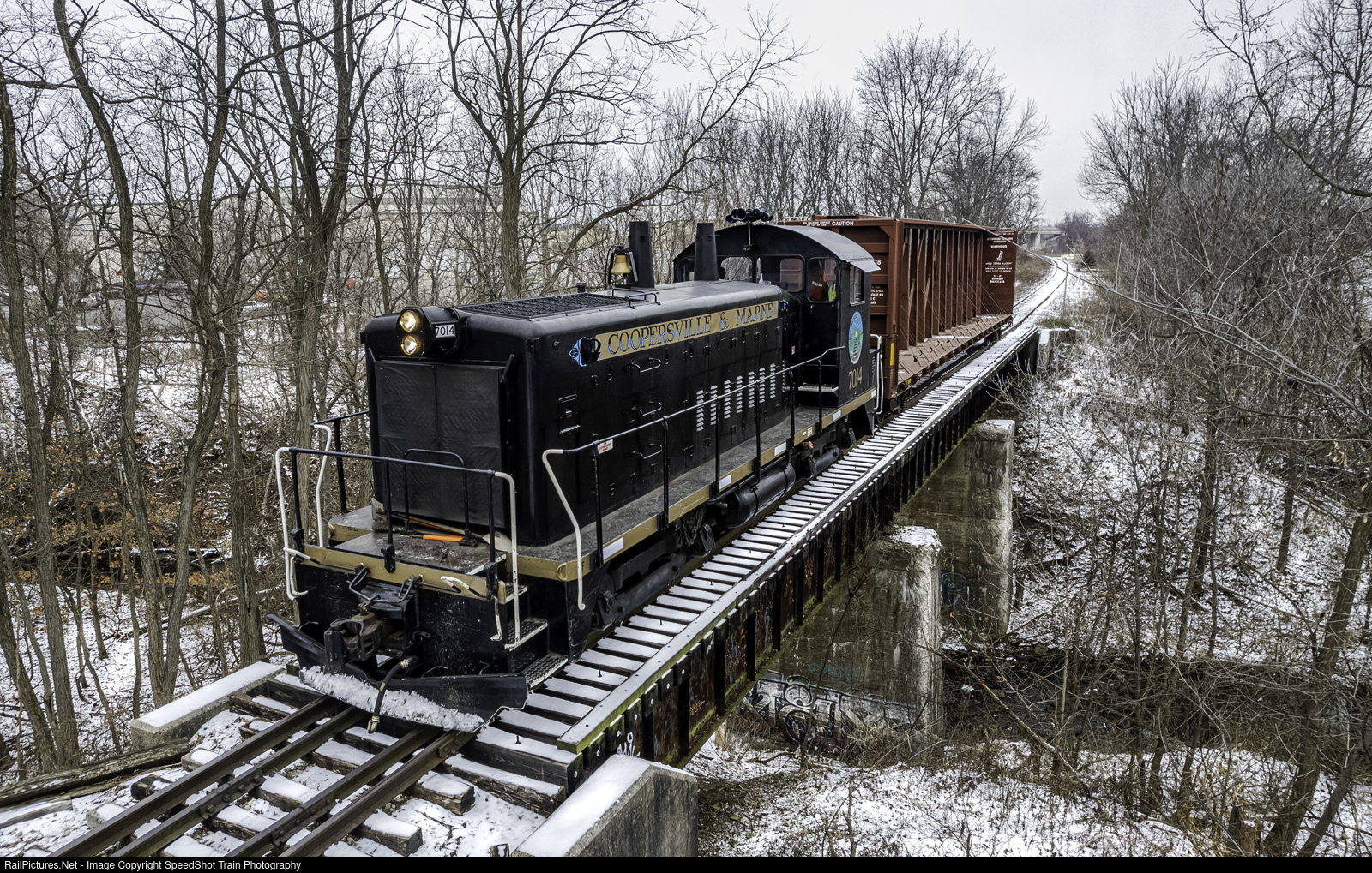 | X7014 CPMY (Coopersville and Marne) Rolls Eastbound over Indian Mill Creek in Grand Rapids Michigan this morning ,with a little snow on the ground - freight run |