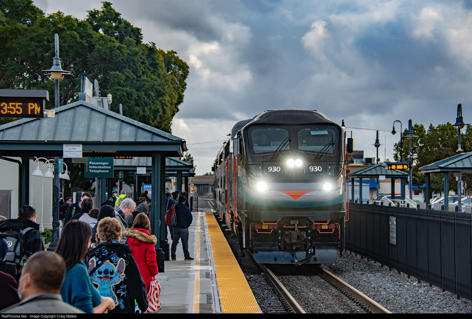 As a late autumn storm moves out, Metrolink train 806 rolls in. Metrolink F125 930 leads this Inland Empire-Orange County Line train, which originated in Laguna Niguel/Mission Viejo and is headed to downtown Riverside. (Orange, California – December 9, 2021)