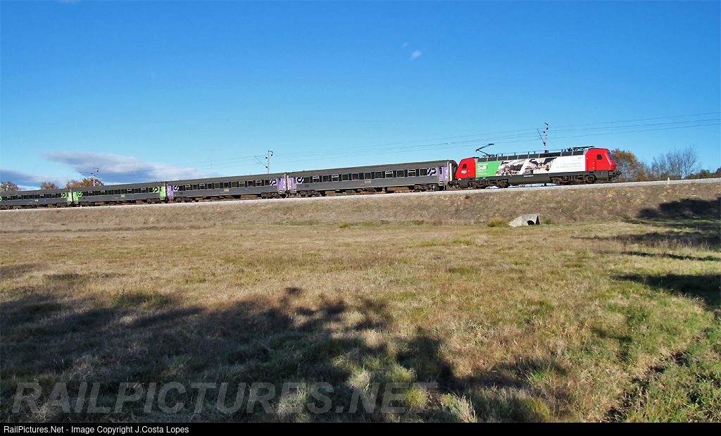 | Intercity train, IC 542 with Siemens CP 5618 locomotive, from Guarda to Lisbon SA, going up from the Meimoa river valley to Fundão. |