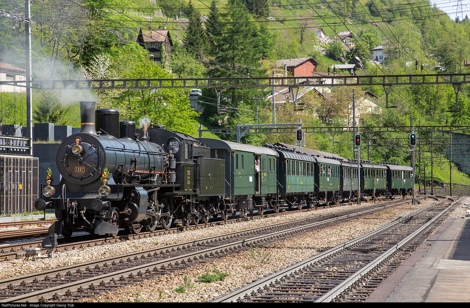 On this day, a rather authentic steam passenger train of the 1920'/1930' circulated from Zürich to Göschenen and back, organized by some enthusiast of the association steam group Zürich (Verein Dampfgruppe Zürich, VDZ). In Gurtnellen, on the Gotthard north ramp, the train stopped for a photo runby.