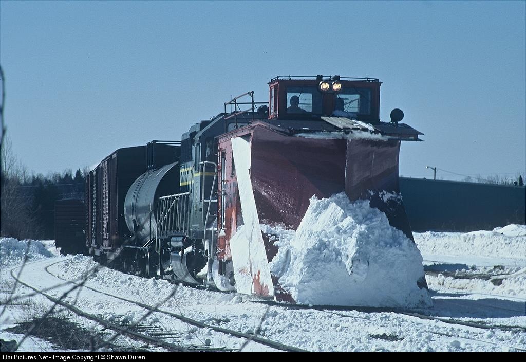 BAR Train no. 213 bucking the snow drifts on the Fort Fairfield Branch to Easton.