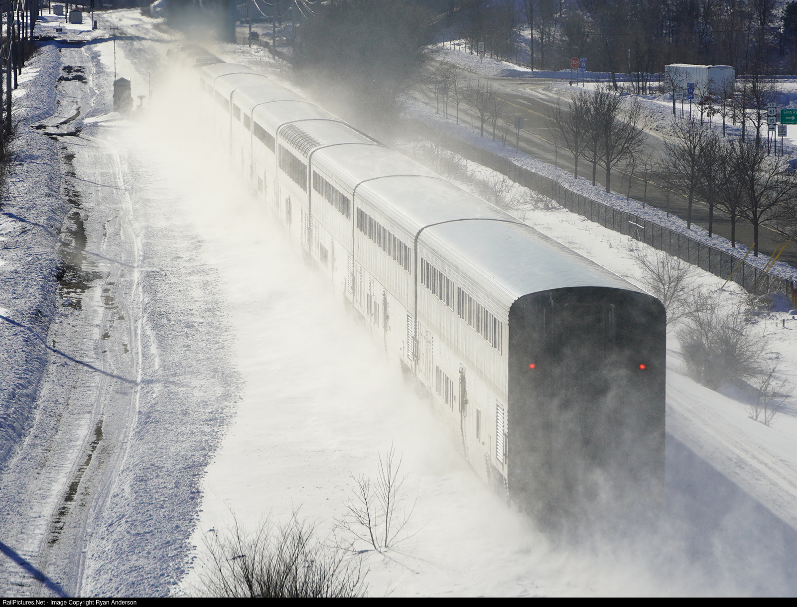 The Empire Builder, lead by AMTK 17, sends fresh snow swirling into the air as it flies through Newport less than 48hrs after a snow storm dumped up to 20" of snow in some areas of the Twin Cities.