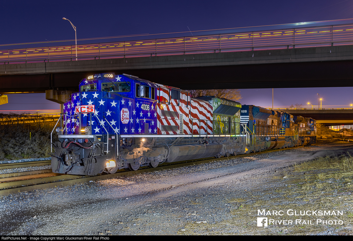 Support Our Troops. On the night of Tuesday, December 14, 2021, Kansas City Southern 4006 ("Support Our Troops", SD70ACe, EMD, 2005) was in Carteret, New Jersey under Roosevelt Avenue, having arrived on Norfolk Southern Train 64K. This unit was dedicated by KCS for Veterans' Day in 2018, but is a particularly interesting unit to catch up with this week, when it was announced that KCS was placed into a voting trust as part of its acquisition by Canadian Pacific Railroad pending final STB approval to create Canadian Pacific Kansas City Ltd. (CPKC). As the unit trailed east and is set up to trail west, this was the only opportunity to catch the nose uncoupled.