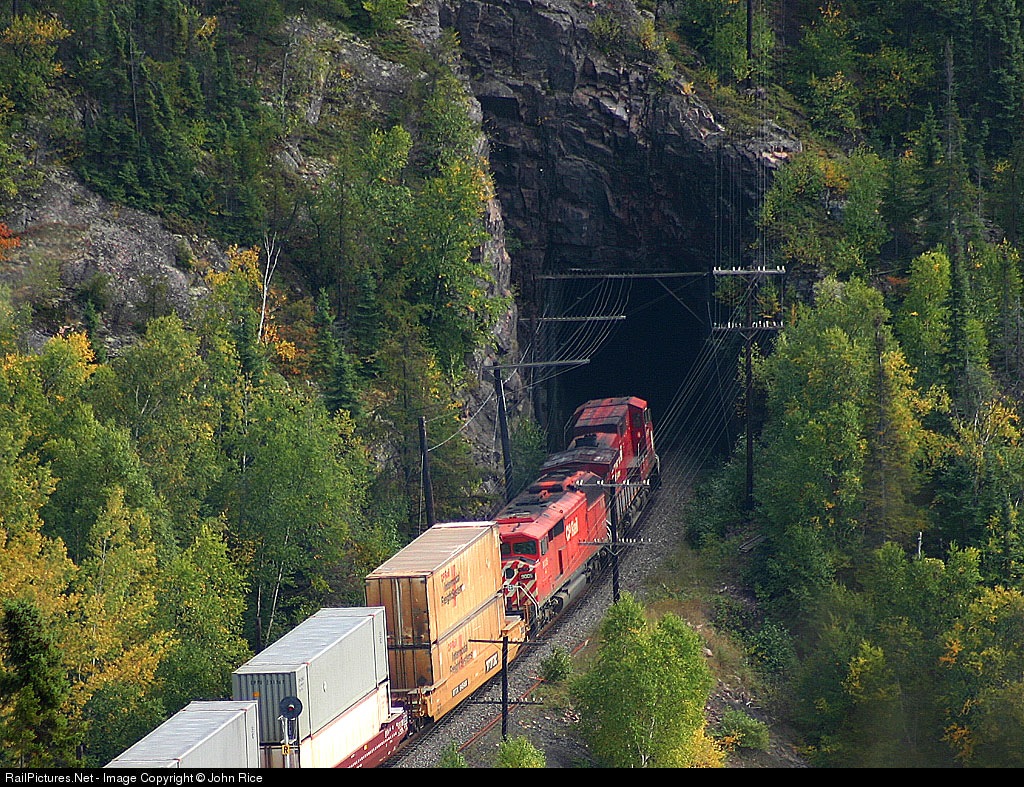 CP 9514 and CP 9005 East about to enter the tunnel at MP 27 Nipigon Sub.