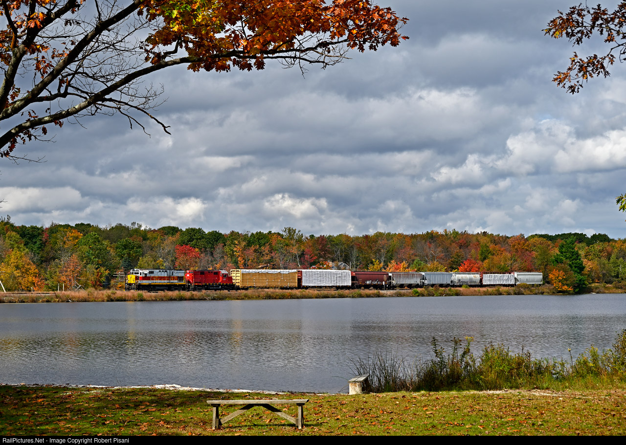 PO-74 starts to slowly roll east after pausing on the causeway over Pocono Summit Lake due to track work ahead.