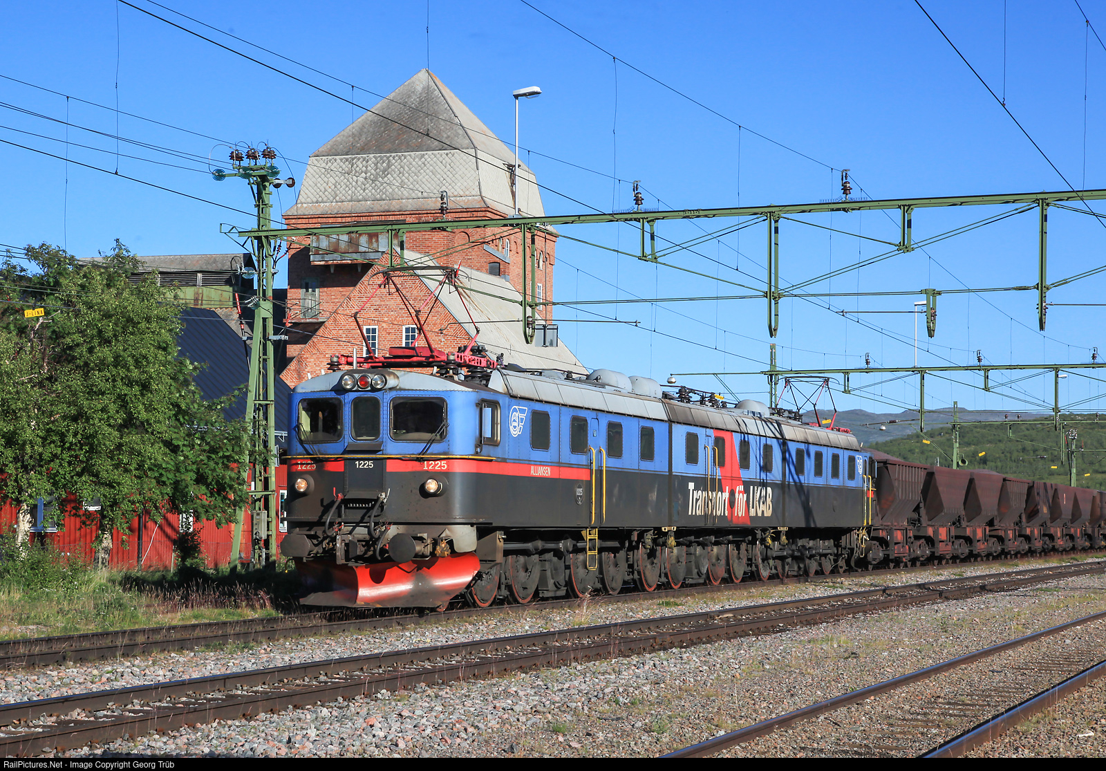 | Dm3 # 1225-1242-1226 "Alliansen" is pulling the 5200 ton ore train 9932 from Kiruna to Narvik through Abisko Oestra station. The station building is typical for the "ore line" (Malmbana in swedish), housing the transformer substation in early years of electrification. Similar buildings are in Torneträsk and Vassijaure.