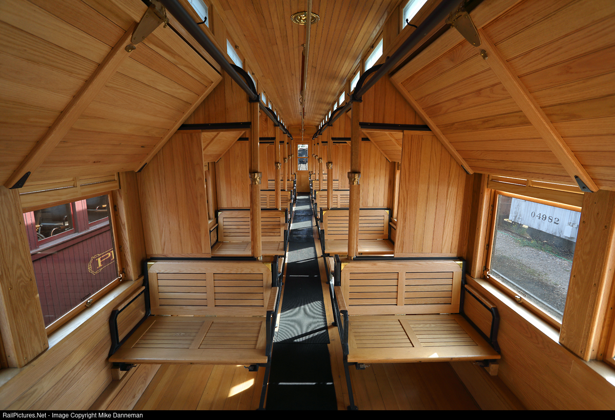 In 1994, the Friends of the Cumbres & Toltec organization acquired the body, and beginning in 2009, began a ten-year-plus rebuild of the car at Colorado Springs, Colorado. It is restored to its as-built 1889 appearance, inside and out. The entire interior of the car is constructed of clear-finished red oak—wood benches and wood bunks—make it very utilitarian. When lowered, “beds” provide only about 5’-10” worth of length, so you better not be too tall either. And don’t forget—BYOB—bring your own bedroll!