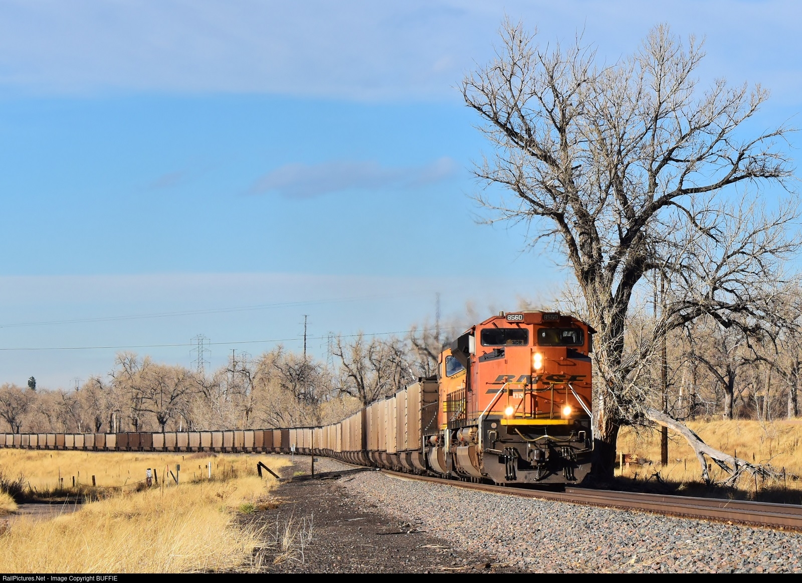BNSF 8560 (SD70ACe) leads a coal train on the southbound Joint Line through Acequia, Colorado.