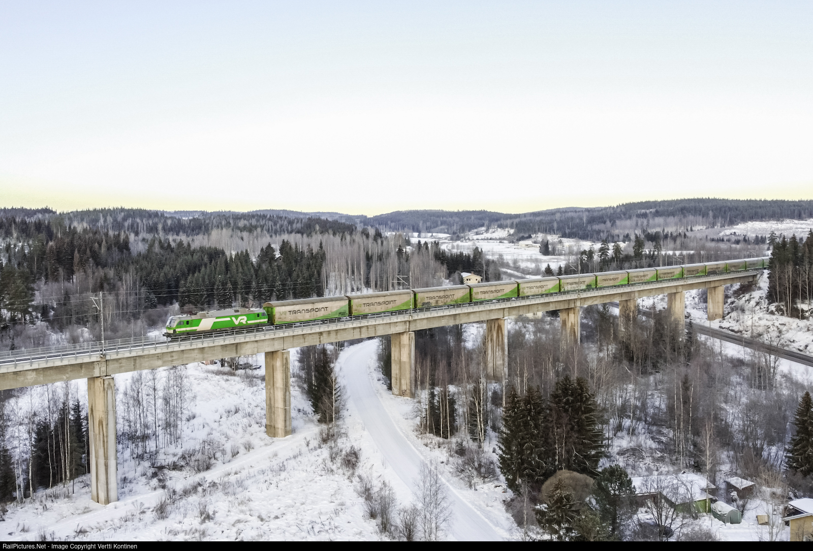 VR freight train TA 3492 from Äänekoski to Vuosaari port, Helsinki crossing Markkula bridge in Korpilahti, Jyväskylä