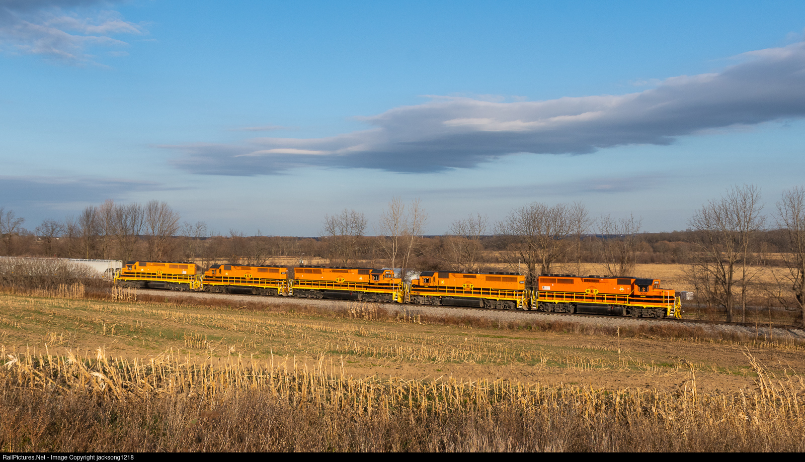 The southbound Rochester & Southern empty salt train passes through the harvested farm fields of western NY as it nears the end of its journey to the American Rock Salt Mine.